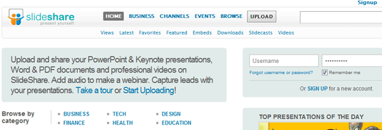 Simply put, SlideShare is the best way to get your presentations and documents out there on the web. It’s a place where you can share your ideas and learn from the ideas of others. Users regularly comment, favorite, and download content. And just like Flickr and YouTube, SlideShare offers an easy way to embed their presentations on your website.