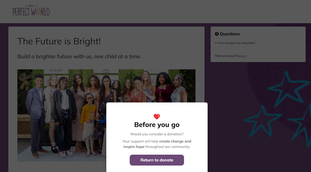 Check out our project for In a Perfect World to see a FundraiseUp integration in action.