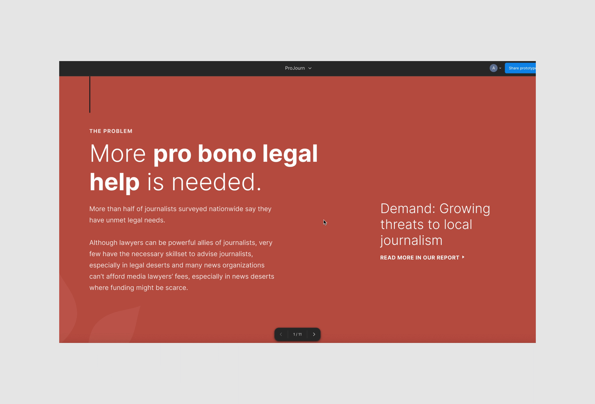 Prior to adding this into our prototypes, the design still showed a long-scrolling section with a lot of empty space that we would need to talk through to clients. Now, by simply making a section sticky once a viewer mouses over that top section of the design, we can better showcase how this content will appear on the web for clients.