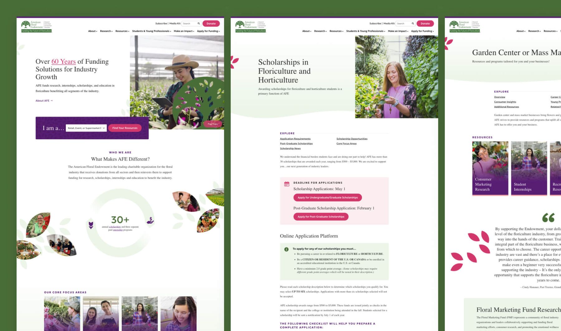 The Endowment’s website serves as a resource hub and engagement center for multiple target audiences, including donors, students, researchers, and more. We were excited to partner with the organization on two distinct projects, a nonprofit website design for the main Endowment.org and a companion microsite and brand for Sustainabloom, a new sustainability-focused resource hub.