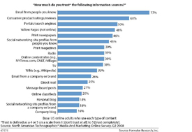 A recent Forrester Research study shows the breakdown of how much consumers trust different information sources. Search engines come in third place only behind email from friends and consumer reviews.