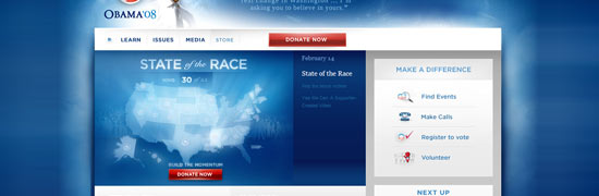 As described in the eye tracking article above, the first pass a visitors eye makes, is in a horizontal stripe across the top of the page. Many sites will put a banner in this area along with a call to action. This has become nearly universal among political websites that must quickly interact with new visitors since the site may be only be up during the campaign.