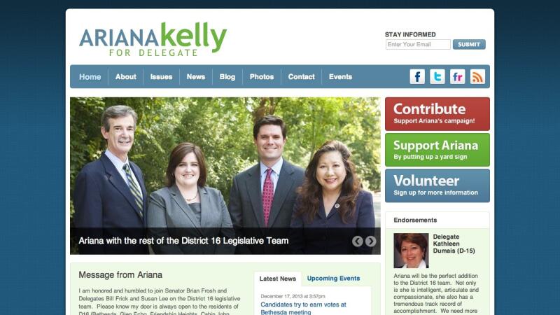 The campaign website for Ariana Kelly serves as a great example of a smaller election utilizing the power of the Internet. After seeing other work we've done in Maryland, the Kelly campaign contacted us to create a website that would highlight Kelly's dedication and friendly demeanor.