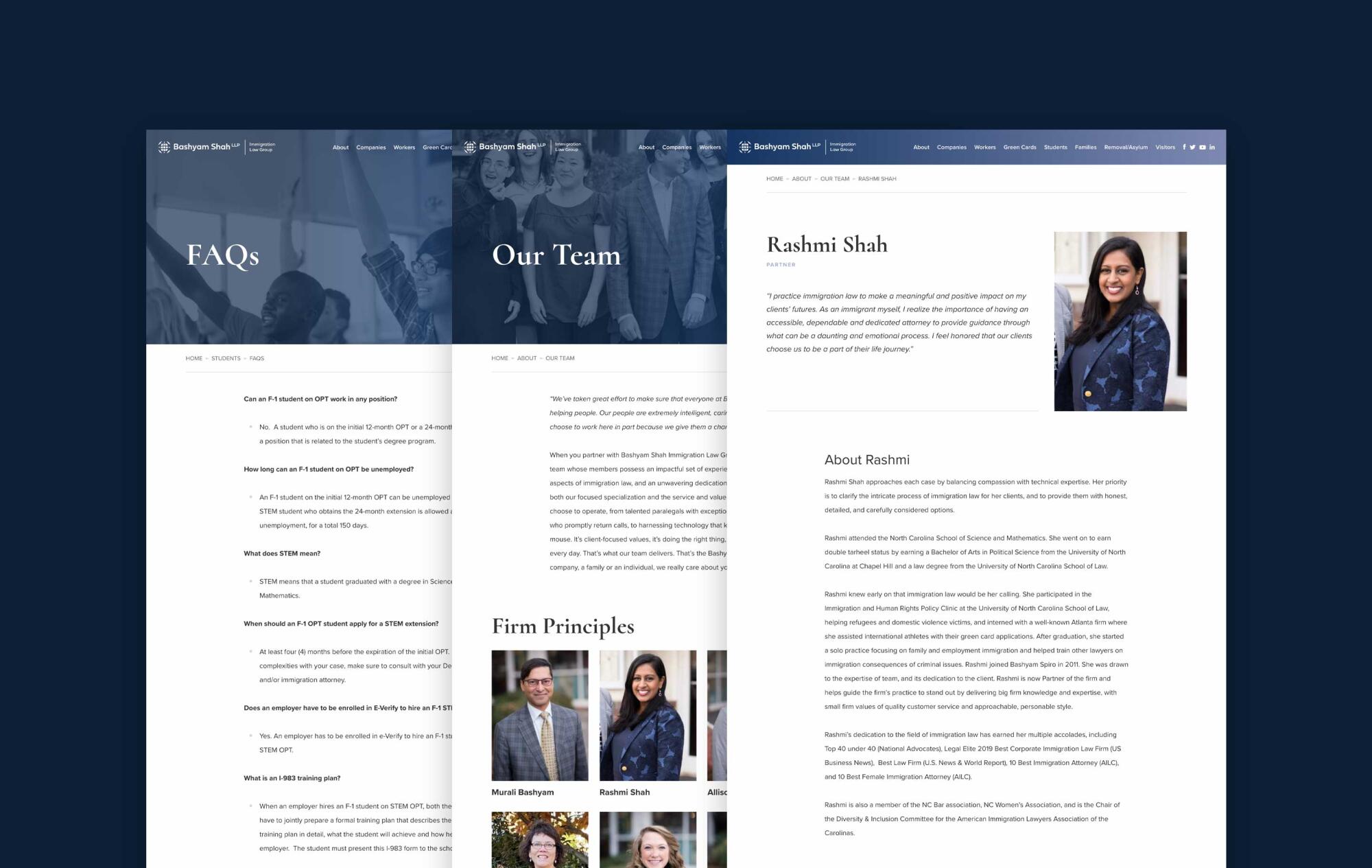 As the firm grew and evolved, they realized that a new website would be an essential part of maintaining their position as a leading immigration law firm. Bashyam Shah approached NMC in search of a law firm website design that would communicate their widespread impact, the depth of their services, and their commitment to cutting-edge information.
