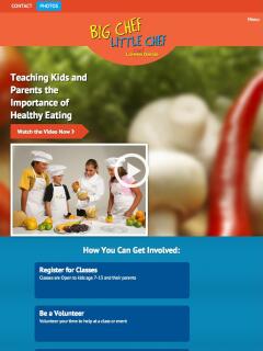 The main way Big Chef Little Chef educates children and families about healthy eating is through on-location cooking classes, events, and workshops. Advertising upcoming classes was a priority when designing the site. Dates of future classes and call-to-action buttons are posted on the homepage and throughout the site so visitors may register on the spot when they see a class that piques their interest.