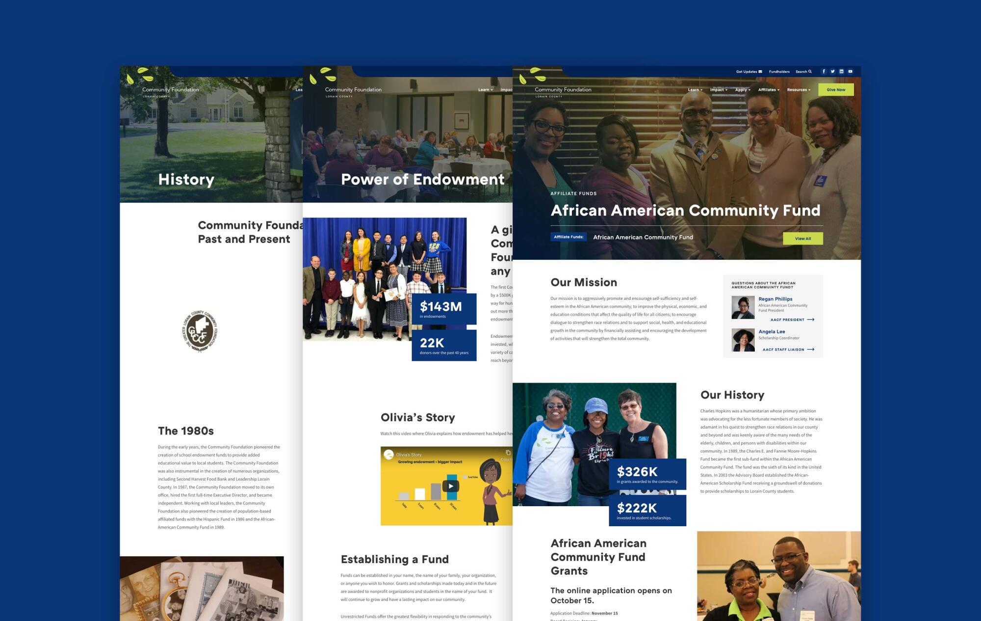 Since many of the foundation’s resources and applications are housed online, it became increasingly important for the organization to maintain an intuitive, up-to-date website. With that in mind, the Community Foundation approached us for a nonprofit website design that would organize a high volume of content within an attractive and modern design.