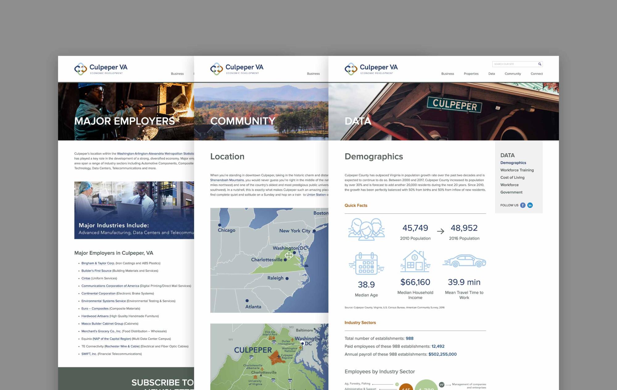 Culpeper County approached us in pursuit of an economic development website design that would highlight key information and show off all that the area has to offer. We joined forces with our longtime friends at Liaison Design to create an attractive site that satisfies the county’s need to convey information about business opportunities, area data, and community events.