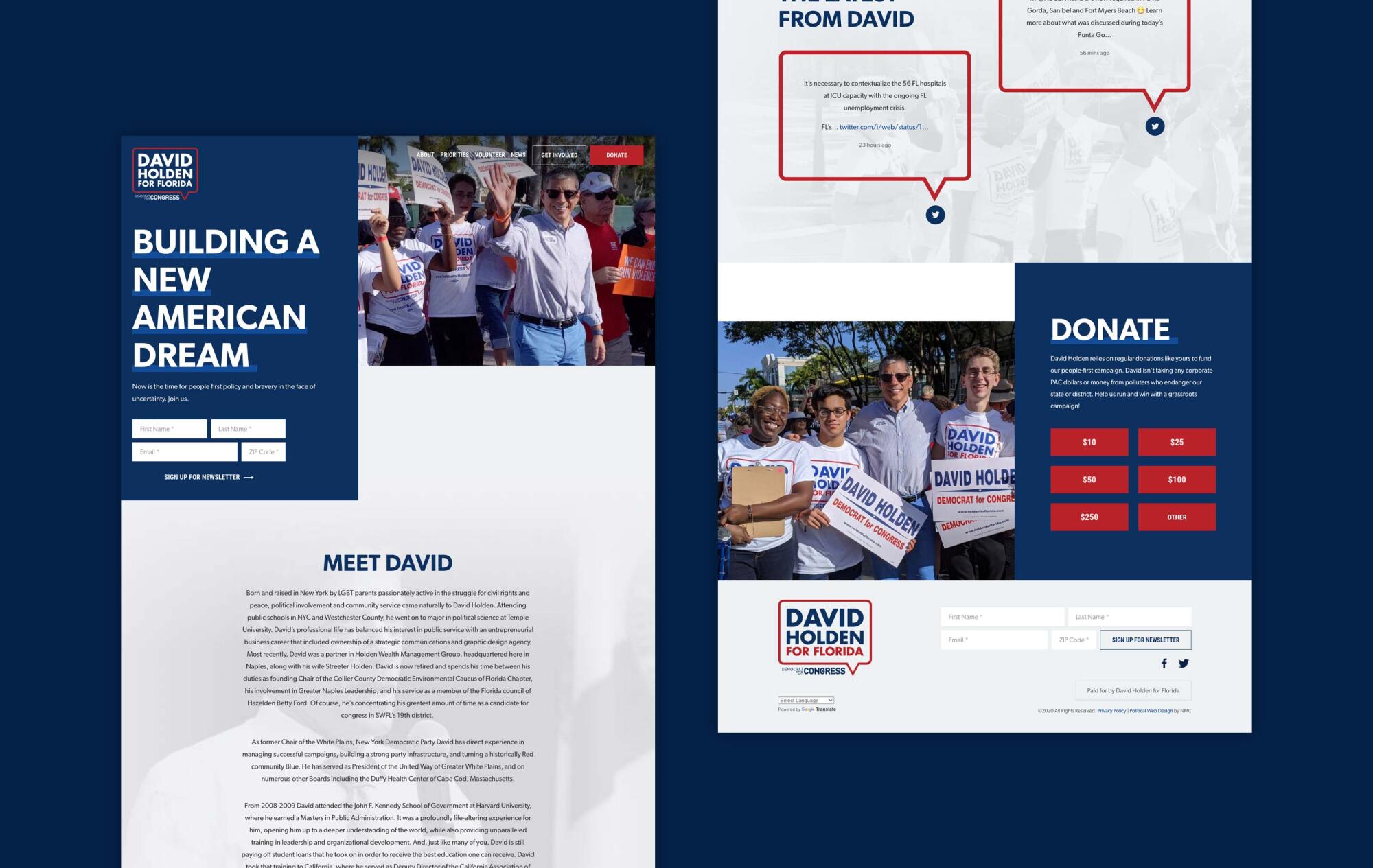 David Holden is a passionate congressional hopeful with a penchant for change. In preparation for the 2020 election cycle, Holden approached New Media Campaigns to create a dynamic new website that would engage and activate Florida voters.
