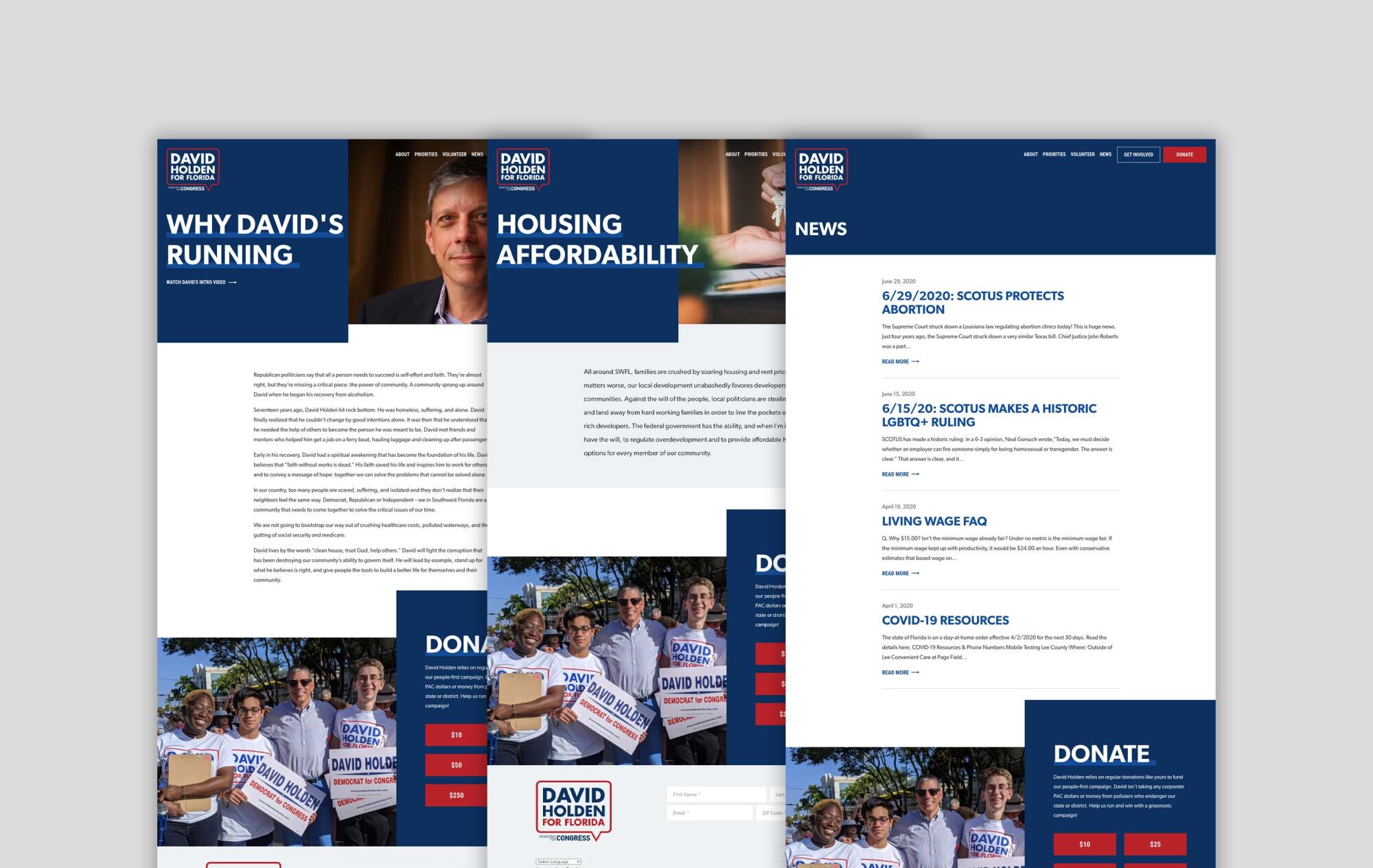 We applied over a decade of experience in political campaign website design to produce a digital platform that accomplishes Holden’s goals with a distinctly fresh and modern twist.