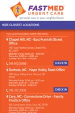 Understanding that many visitors would be in a hurry to find the nearest location due to an emergency or en route to a FastMed, we built a separate mobile site that optimizes for this specific situation. When a visitor goes to the mobile site, their phone GPS is used to detect the location(s) nearest them and prominently displays that option with a single-click option to Check In. The separate mobile site allows us to feature the most important information to mobile visitors and present it in a way that is easy to navigate on the phone.