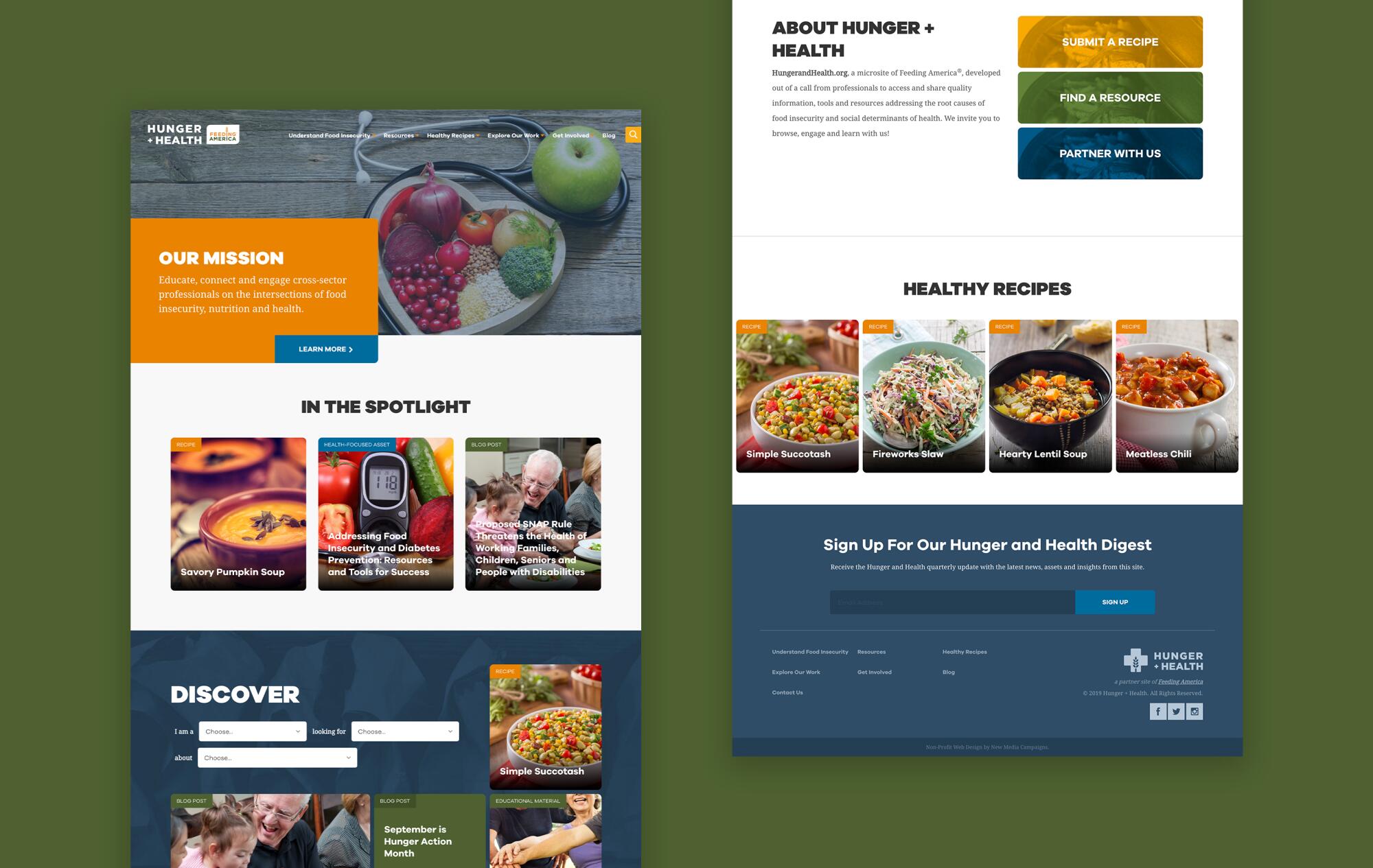 Feeding America turned to NMC to partner with them in coming up with a name, brand, visual language, and nonprofit website design for the effort with the goal of providing a robust and interactive experience for visitors to access resources, recipes, opportunities, and more.