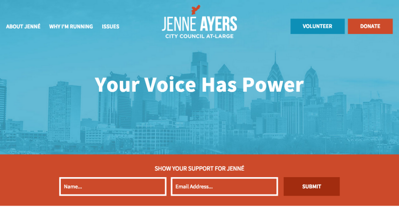 Having a large amount of experience in political website design, New Media Campaigns was a natural choice for the design and development of political candidate Jenné Ayers’ site. Jenné is running for City Council At-Large in the city of Philadelphia, where she hopes to use innovation to address the city’s needs and challenges. NMC developed a clean, youthful site that exudes both Jenné and Philadelphia.