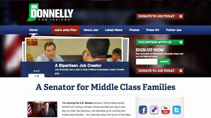 Having worked previously with New Media Campaigns on his Congressional campaign website, Joe Donnelly called upon us once again to design and build the website for his US Senate bid. We were excited to extend our relationship with the campaign and help them design and build a site for this statewide campaign. The new site features eye-catching graphics and design, an extremely intuitive menu layout, and easily discoverable calls to action.