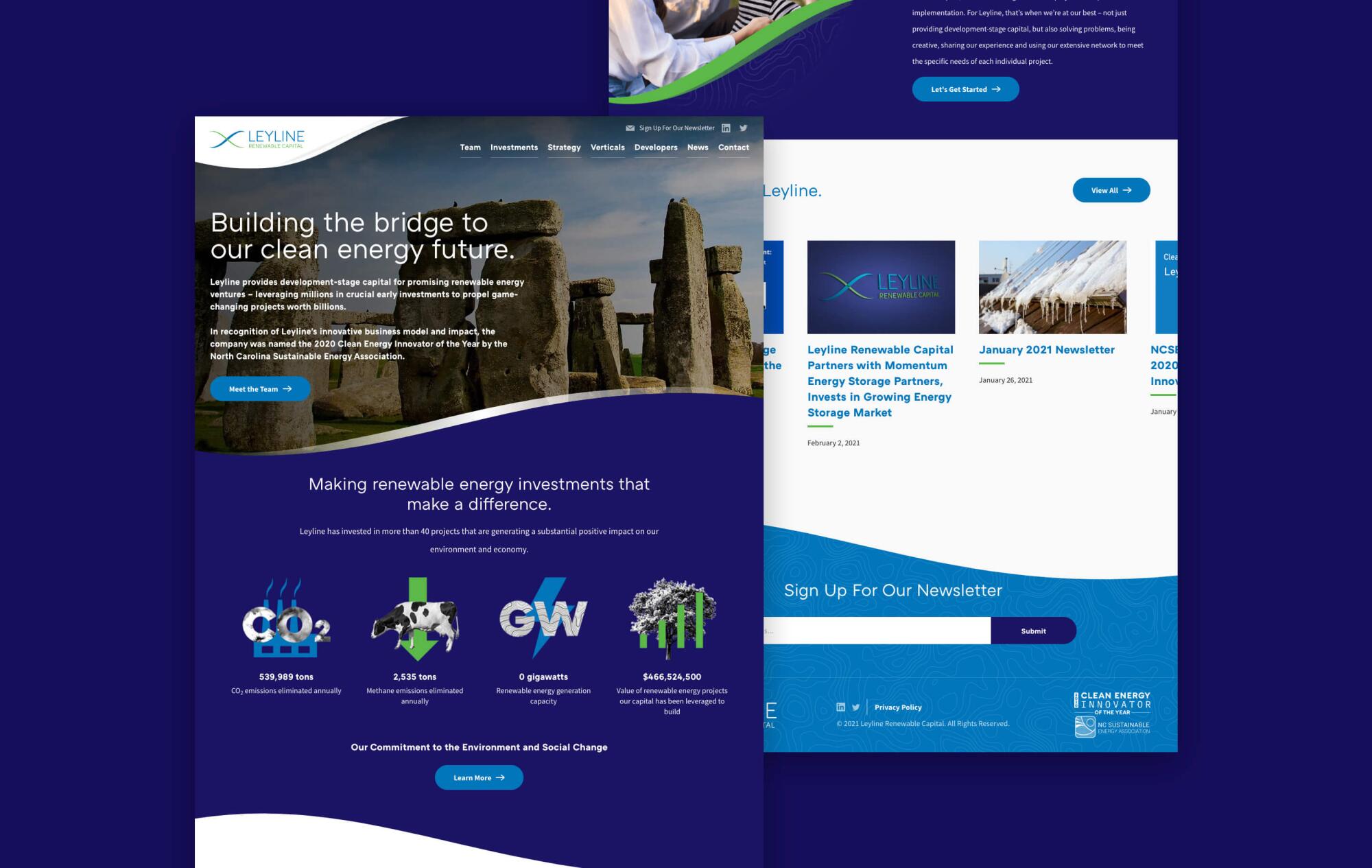 As Leyline built momentum, they decided that a new website would be an important part of distinguishing their work from the offerings of competitor firms. Working closely with the Leyline team, we designed a cutting edge digital presence that outlines their verticals and unique value with creative flair.