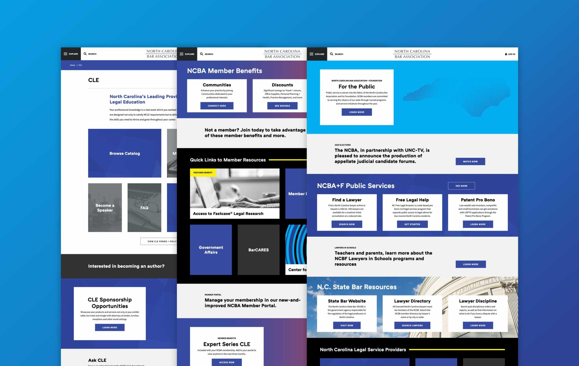 We had previously worked with the NCBA to design and build a website for the North Carolina Bar Foundation, a subset of the organization that promotes access to justice. Needless to say, we were thrilled when the NCBA approached us again to design and guide development for their core website, NCbar.org.