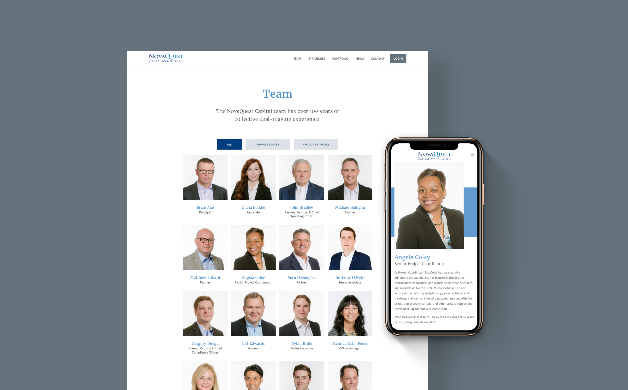 The firm turned to NMC to design and build a site that projects NovaQuest's expertise and success in the space while also making it very easy for visitors to access the strategy that best fits with their needs.