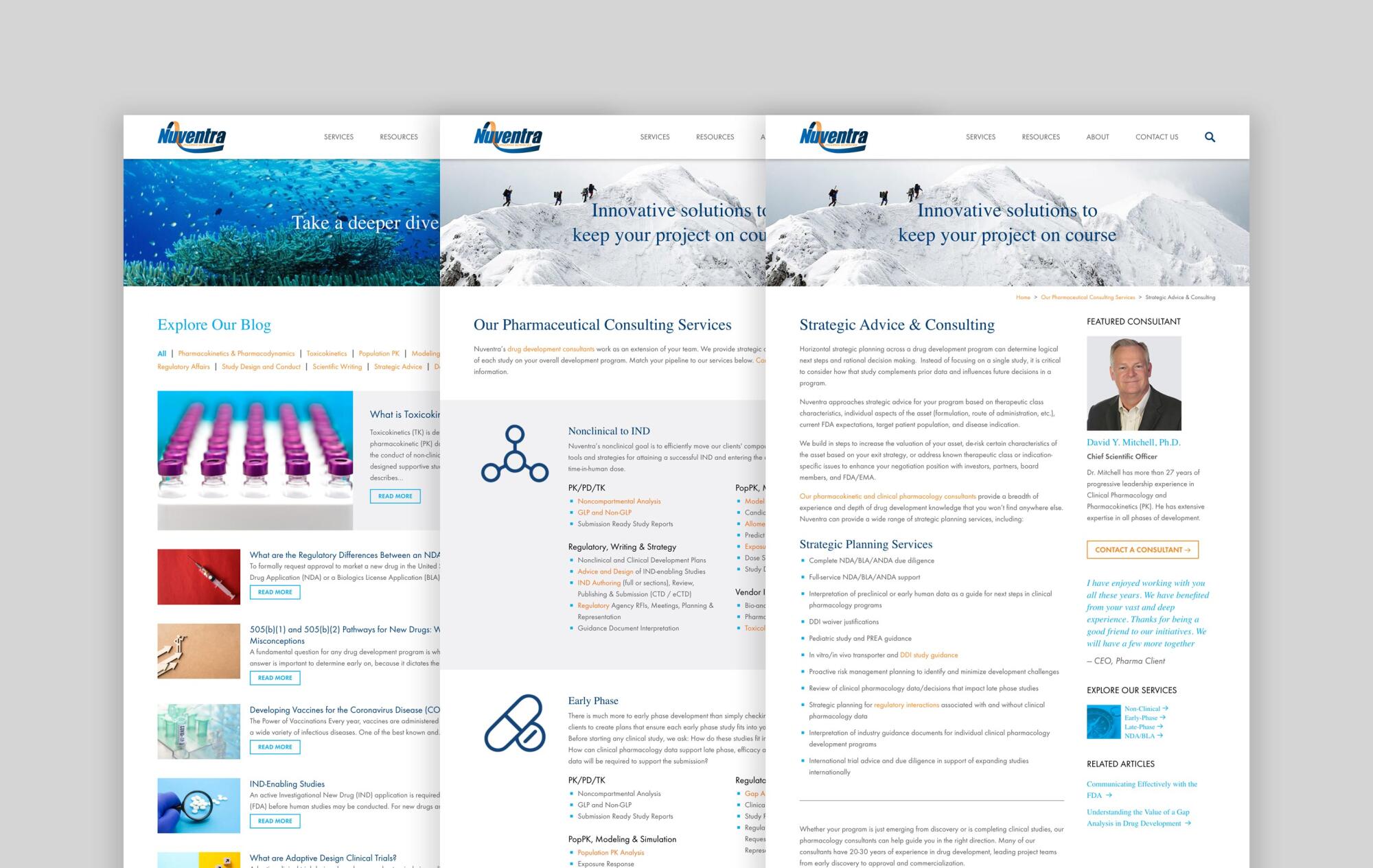 Nuventra came to us in pursuit of a b2b website design that would clearly communicate their expertise and service offerings while easily supporting future growth. Because the firm had been rapidly expanding their services already, they hoped that their new web presence would better show off their sophistication and dynamic approach to consulting.