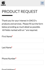 For the website, OXCO asked for a clean layout that made getting in touch and filling out a product request form incredibly easy for website visitors. NMC created a simple, straightforward, and streamlined “Product Request” page that allows potential customers to quickly provide their contact information as well as all relevant information about the product that they are requesting. The “Contact” page is equally user friendly, making it easy for viewers to access all of the company’s contact information, and both the “Product Request” and “Contact” pages are featured in the main menu.