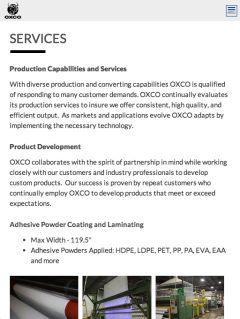 OXCO offers products ranging from composites to laminates, and they also work with customers to create custom developed products. For such a niche audience, NMC delivered a site that showcases the company’s products, services, and commitment to quality, with individual pages devoted to showcasing each of the products that OXCO offers.