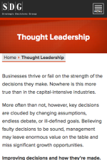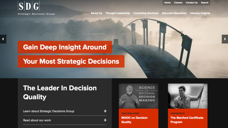 NMC planned, designed, built, and launched a totally new and custom website for SDG, an international consulting firm founded in 1981. SDG helps global businesses raise not only the quality of their decisions but also their decision-making processes. The new site is responsive, image-rich, offers a variety of resources available for download, and feaures their successful case studies for projects around the world.