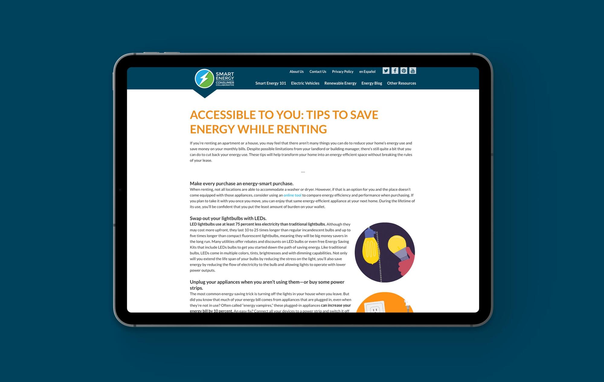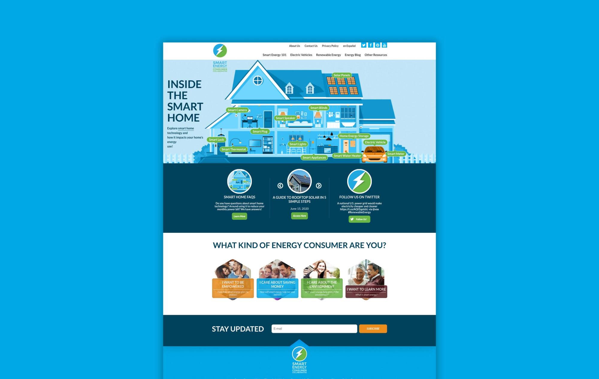 Back in 2013, we worked with Smart Energy to build an interactive website for their original Smart Grid initiative. The site got the job done, but over time Smart Energy realized that consumers are more interested in the relationship between energy and their homes instead of the full energy grid system. With this new guiding focus in place, Smart Energy approached us again in 2020 to rework their nonprofit website design so that it would place a greater emphasis on energy in everyday life.