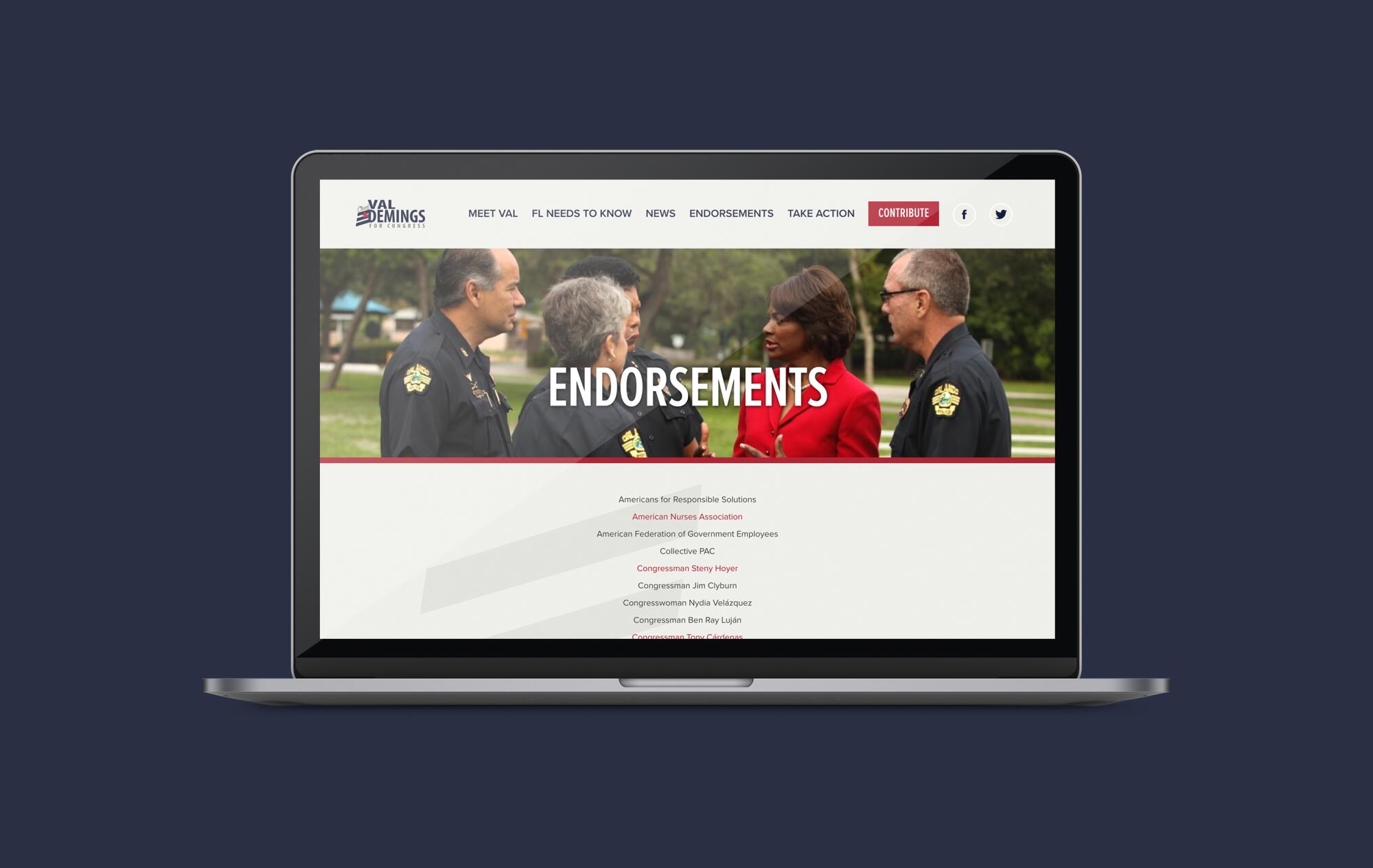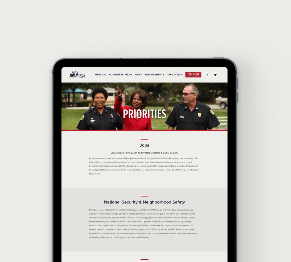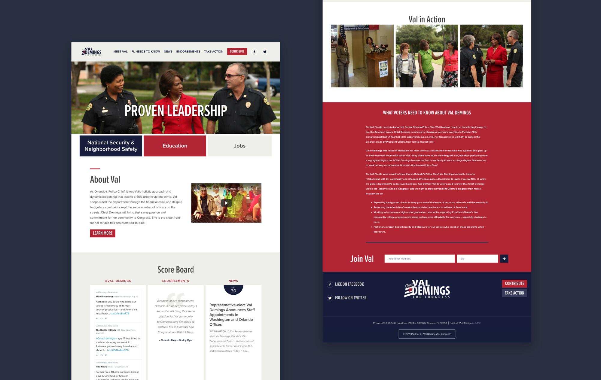 Val Demings was previously Orlando's Police Chief and decided to run for Congress to continue her public service to the area. She partnered with NMC on her congressional campaign website, wanting to emphasize her history in service and leadership.