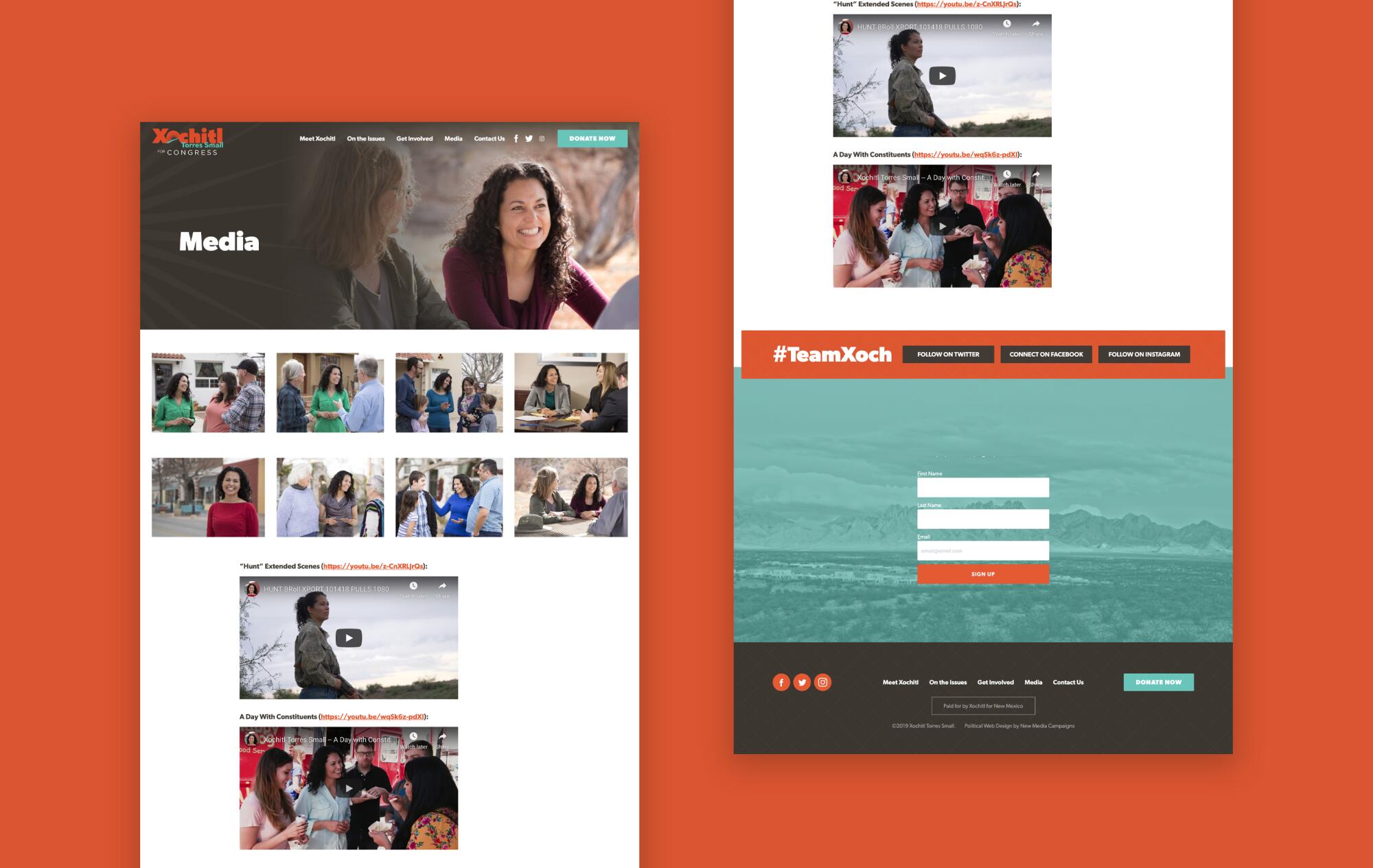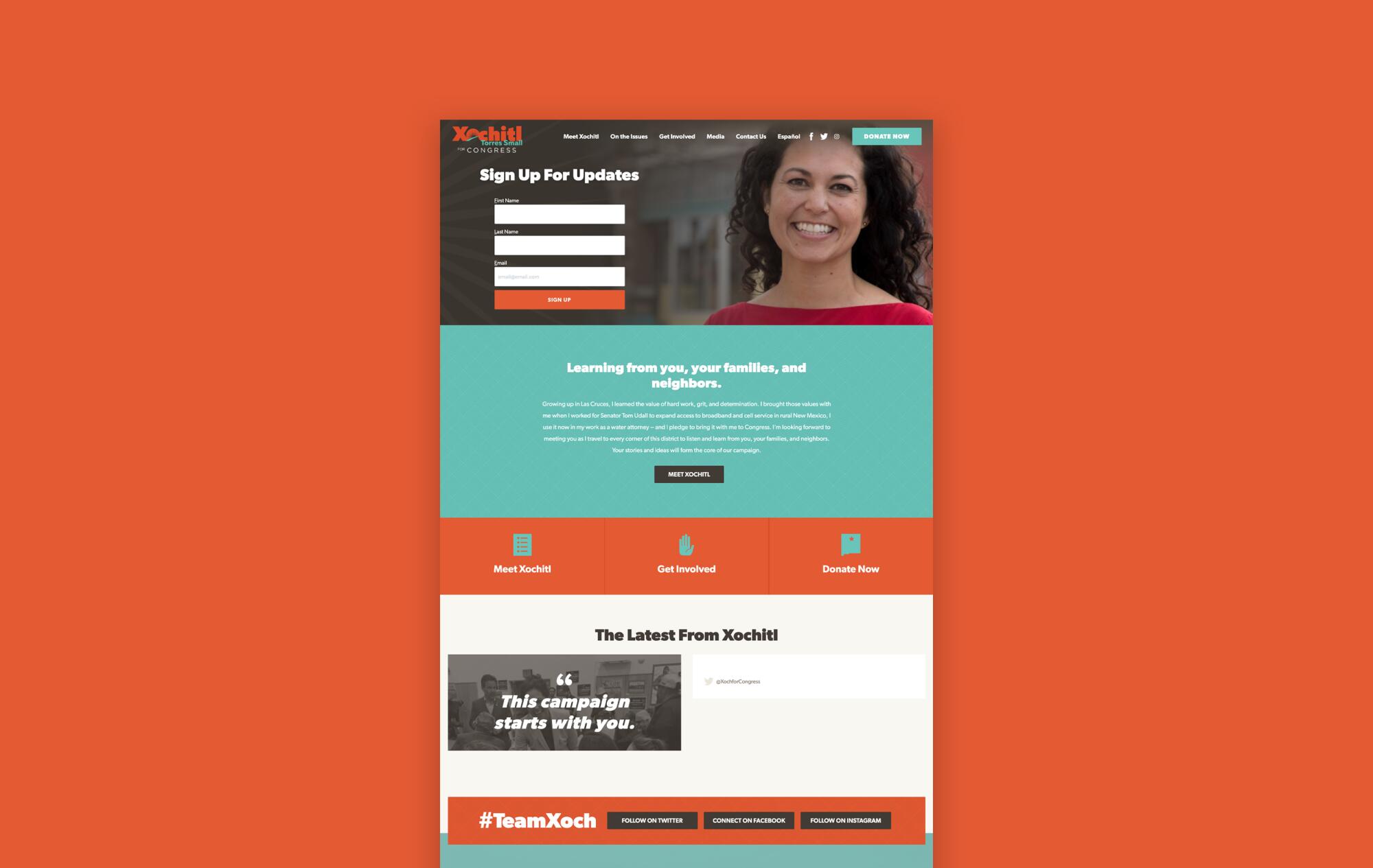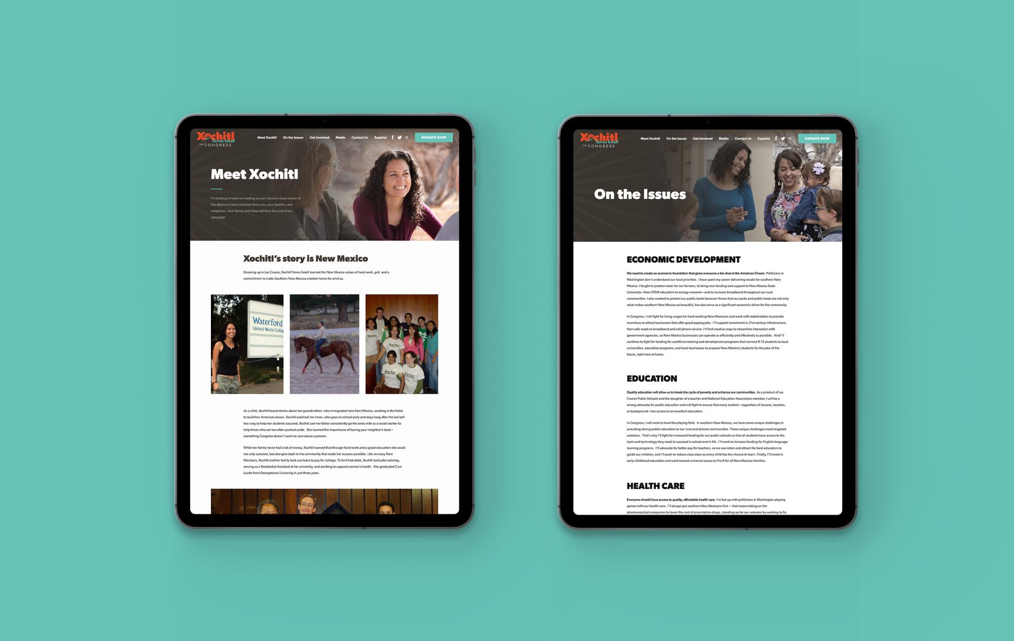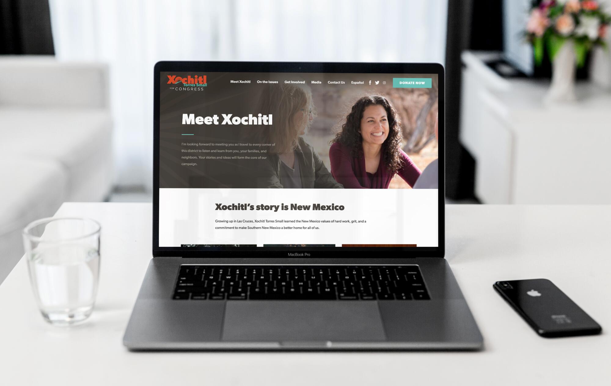 Xochitl Torres Small was a first-time candidate working to turn a red congressional district to blue in New Mexico. NMC worked with her campaign to design a modern, scalable, and action-focused congressional campaign website to help educate, engage, and excite voters. The site was designed to embrace the theme's of the campaign and nod to the heritage of the state.