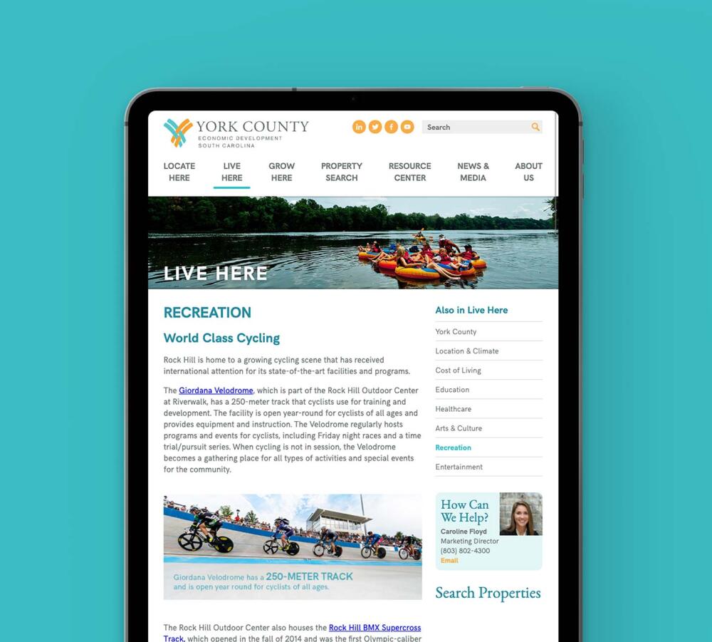 In order to attract new residents and promote business relocation, York County reached out to us for an economic development website design that would highlight the area’s best features. We worked closely with our friends at Liaison Design to create a polished site that efficiently organizes resources, tools, and information about life in South Carolina.