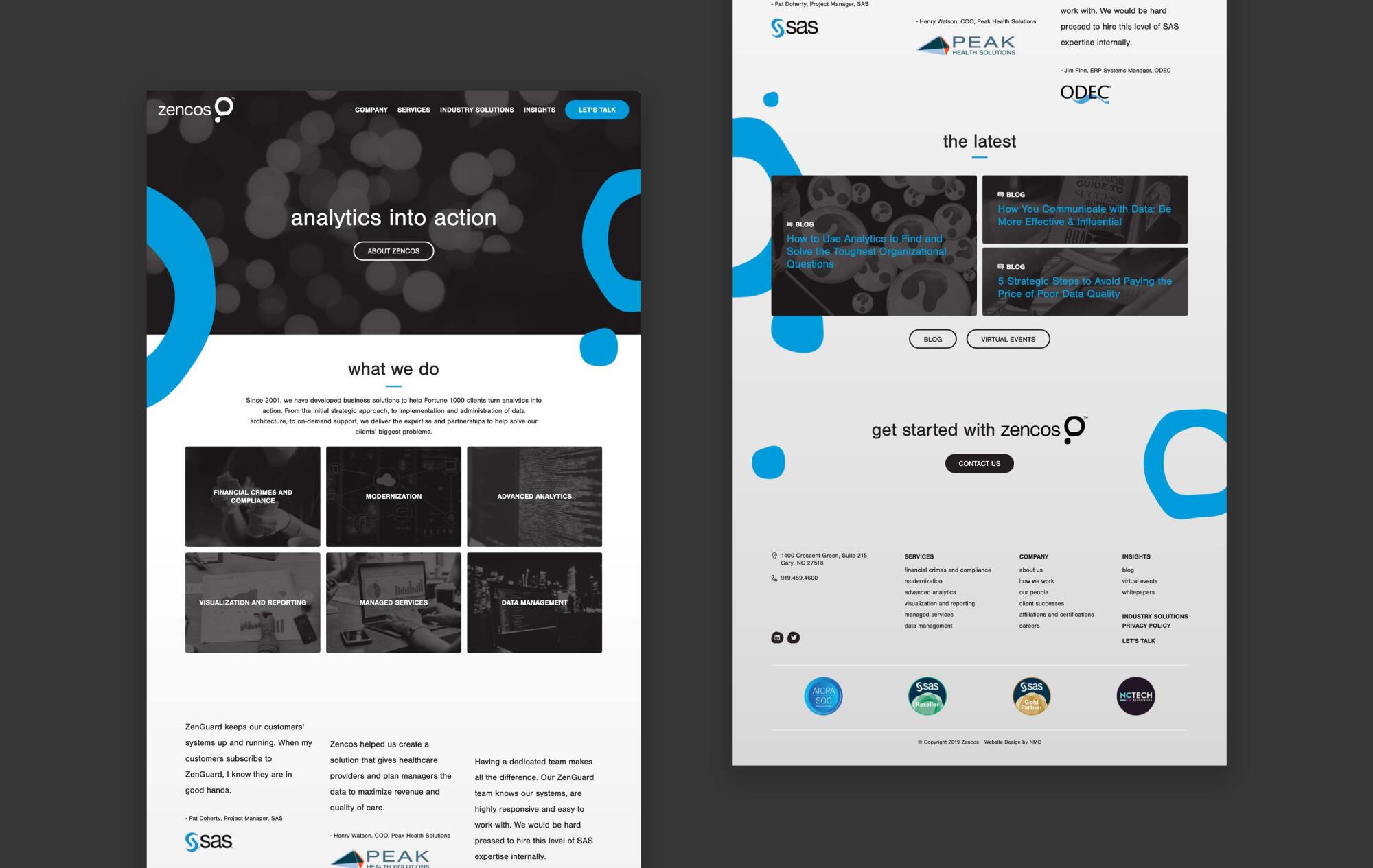 Zencos approached NMC for a B2B website design that would communicate their strong sense of brand while increasing conversions and providing valuable information to potential clients. We brought this vision to life with a website that utilizes unique graphics, clear communication, and a contemporary design to emphasize Zencos’ expertise.